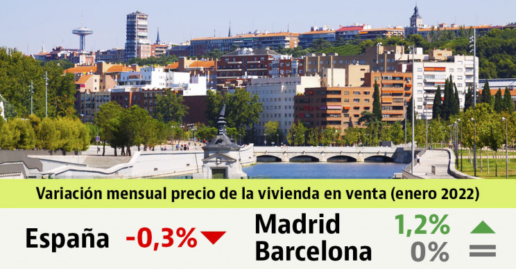 El precio de la vivienda usada en España ha registrado una bajada del 0,3% intermensual durante el mes de enero, situándose en 1.824 euros/m2, según el último índice de precios inmobiliarios de idealista, el principal marketplace inmobiliario del sur de Europa. Por el contrario, se produce una subida nacional del 2,1% interanual. Frente al arranque del año pasado, el precio de las casas usadas en venta baja un 1,3% en la ciudad de Barcelona, mientras que sube un 1,6% en Madrid.